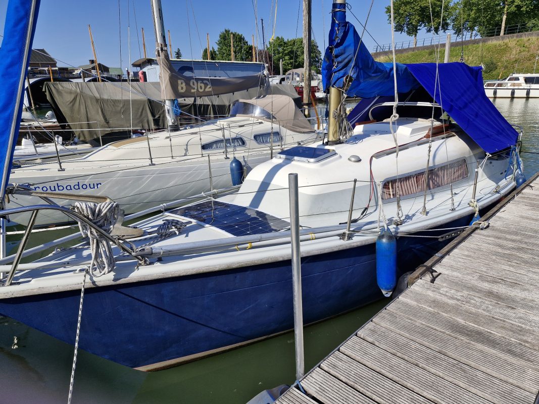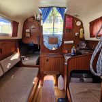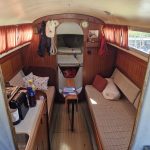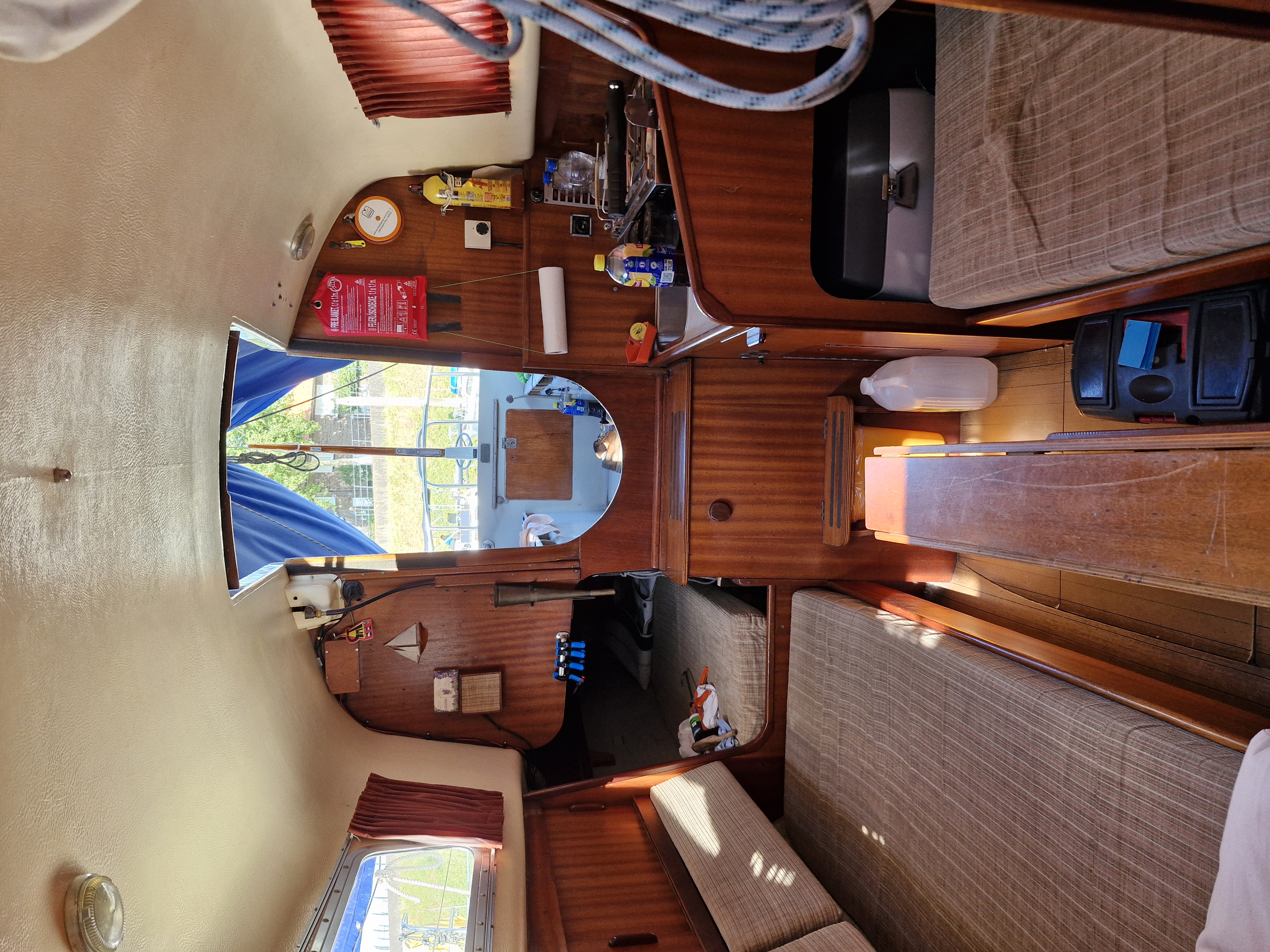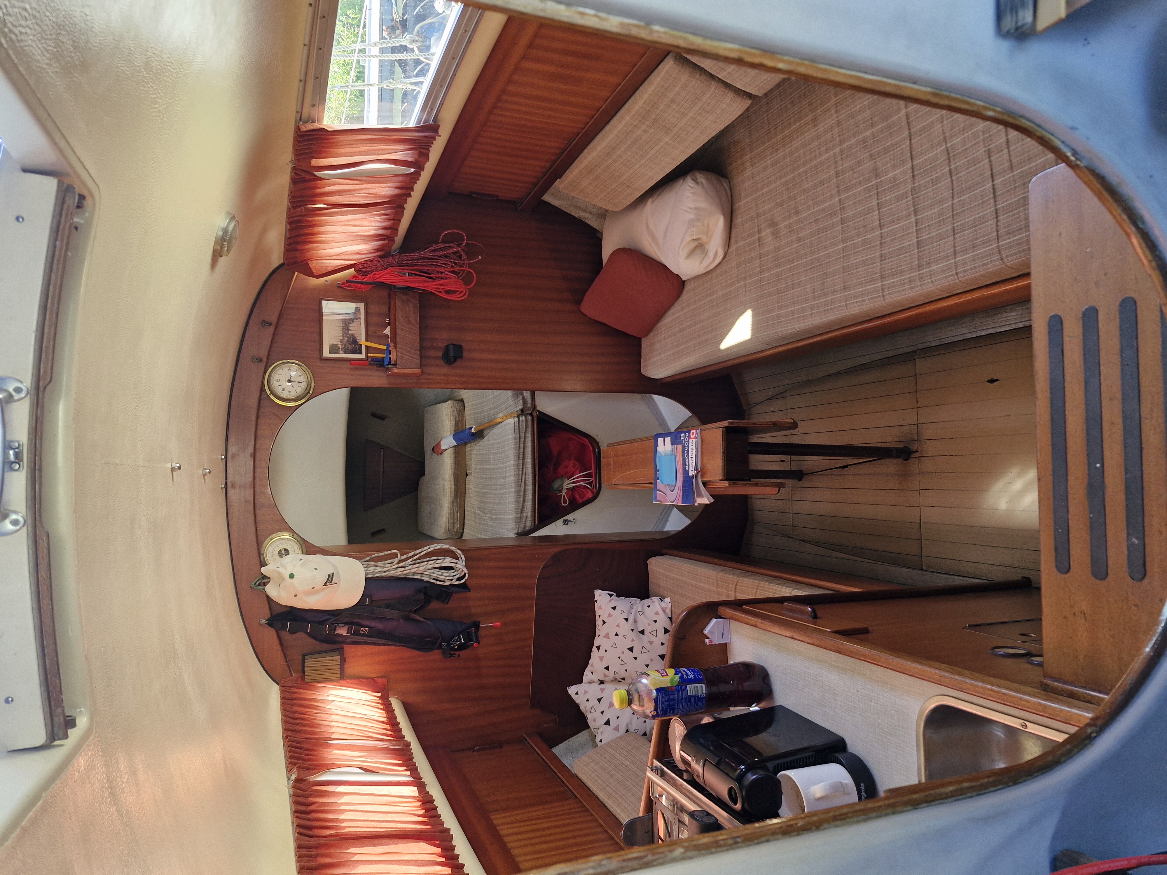 Omdat het schip nog niet helmaal vaarklaar is, beschik ik nog niet over de mij zo gewenste zeilfoto’s. Wel kan ik melden dat het interieur ongewijzigd is gebleven, de motor nog de orignele Sabb uit 1972 is. |