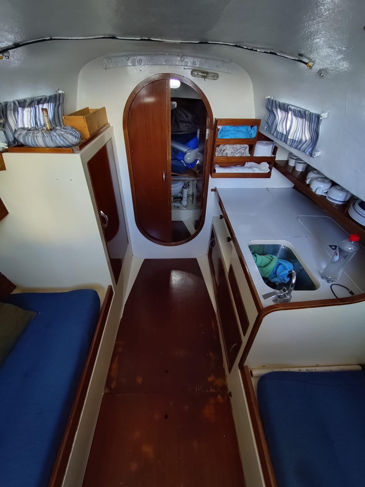| Geschiedenis | Er ontbreekt een bouwersplaatje. Bouwjaar, bouwnummer is niet bekend. Het zal gaan om een bij Gusto gebouwde Sailmaster, die werden gebouwd tussen 1965 en 1968, voorzover ik kan nagaan. Met alleen het bouwjaar kan de Sailmaster al in de hoek van de Klassieke jachten worden geschoven. Hij behoort tot de eerste in serie gebouwde polyester jachten in de Nederlandse watersportgeschiedenis, die bovendien een interessante schakel vormt tussen de Nederlandse en de Amerikaanse jachtbouw. De Gustowerf boouwde voornamelijk schepen voor de grote vaart, de offshore en ook bruggen. De jachtjes deden ze tussen de bedrijven door. Na bijna zestig jaar voelt het schip nog stevig en hard aan. |