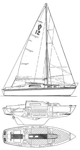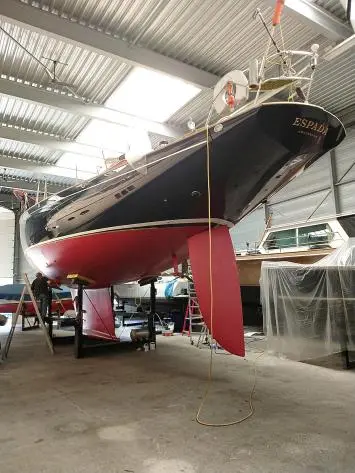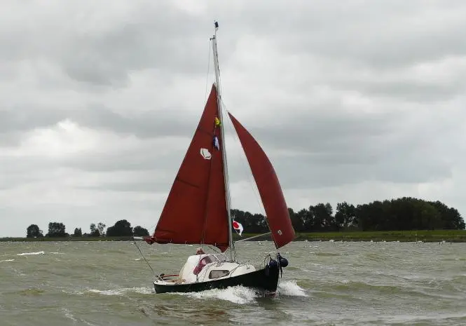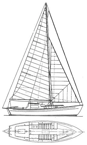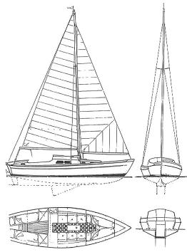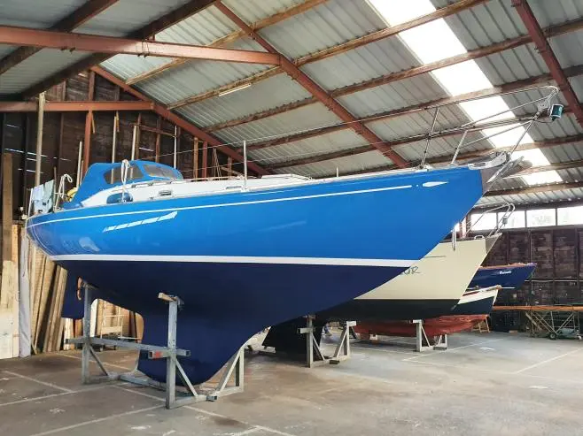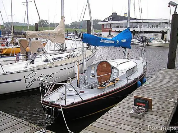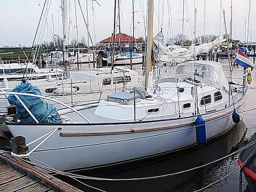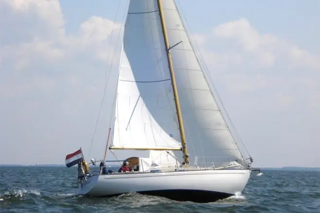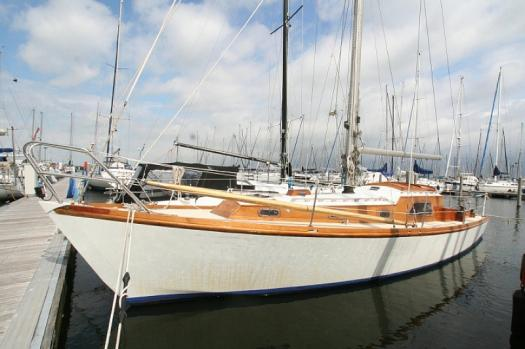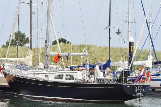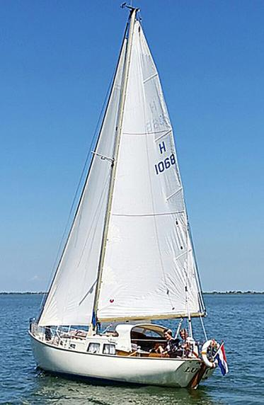 Verder naar beneden de Albin Vega, industrieel gebouwd met een extra zware romp om een stranding op de Zweedse rotskust te overleven. Een laag vrijboord om van het water te genieten met een lichte kattenrug voor wat extra hoofdruimte op dit relatief kleine scheepje.