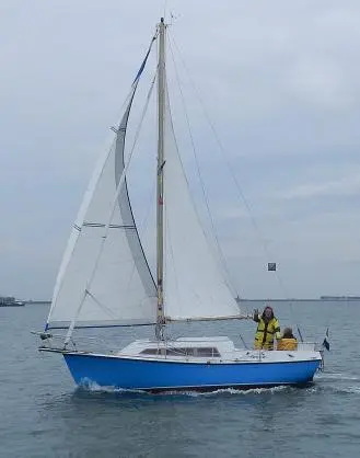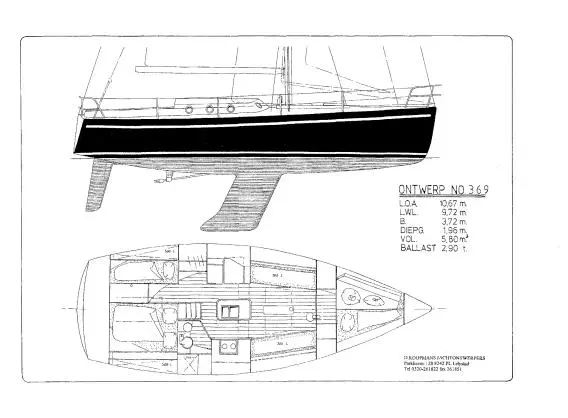 Daaronder een hybride ontwerp van André Hoek, slank met lange overhangen en een relatief laag vrijboord, maar wel een rondspant met vleugelkiel en gescheiden roer.